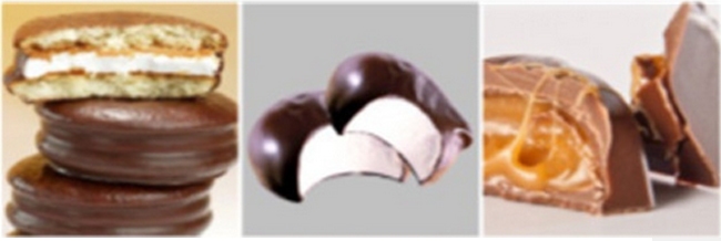 本機是生產(chǎn)色巧克力品種的專用設(shè)備,能在多種食品表面浸涂巧克力漿料,諸如威化、餅干、蛋卷、蛋黃派、膨化食品等,形成多種口味獨特的巧克力制品。