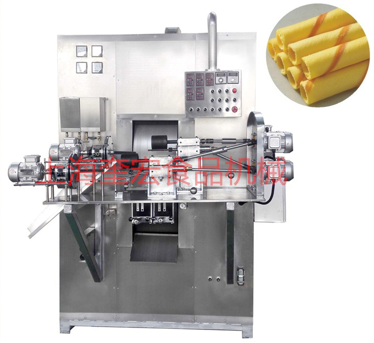 面料打漿機(jī)可輕松攪拌面漿,具有面漿均勻、攪拌時(shí)間短的優(yōu)點(diǎn),再經(jīng)過(guò)送漿機(jī)傳送至主機(jī)烘焙。烘焙工藝采用氣體加熱,爐灶點(diǎn)火裝置為電磁閥自動(dòng)引火,靈敏度高,操作簡(jiǎn)便。烘焙輪轂可調(diào)節(jié)輪轉(zhuǎn)速度,并由自控溫度探測(cè)儀進(jìn)行溫度控制,輪轂溫度過(guò)高或過(guò)低時(shí)可自動(dòng)調(diào)節(jié),保持恒溫狀態(tài),能有效避免能源氣體浪費(fèi)。灌芯芯棒及卷成型裝置使用變頻控制器電機(jī),可調(diào)整速度。芯料經(jīng)球磨打料,經(jīng)灌芯機(jī)自動(dòng)注入面皮,通過(guò)卷成型繞城棒狀,送至自動(dòng)切刀裝置切棒。蛋卷厚度直徑,可通過(guò)芯棒軸上下調(diào)節(jié)改變。