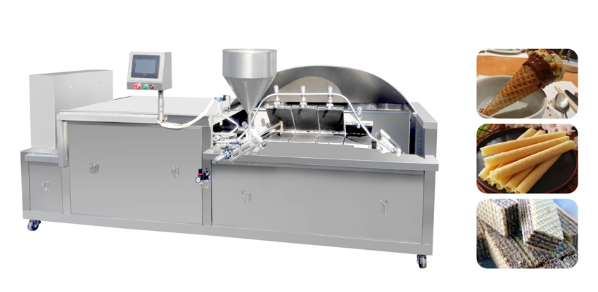 本機為我公司最新研發(fā)的蛋卷威化一體機,主體為隧道式烘烤結構,生產(chǎn)速度快,性能穩(wěn)定,操作簡單安全。自動卷成型機可將蛋皮自動加工成蛋卷,所加工蛋卷產(chǎn)品外形美觀整齊,成型速度快,解決了人工卷成型的所有問題,大大提高了生產(chǎn)效率。加熱方式有電加熱和燃氣加熱2種規(guī)格可供客戶選擇。
